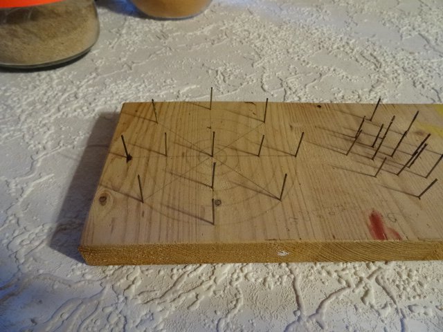Ein Nagelbrettchen zum Trocknen , z. B. für Bierkrugdeckel