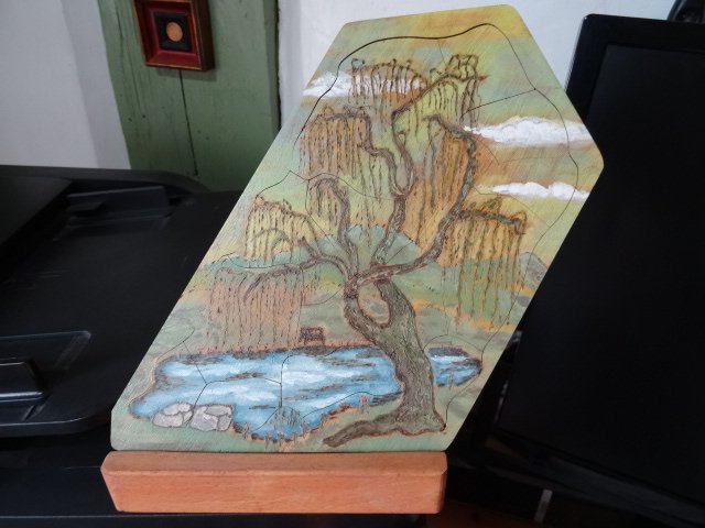 als Puzzle zerschnitten . Mit einem Brennkolben habe ich dann die Struktur noch etwas herausgehoben .