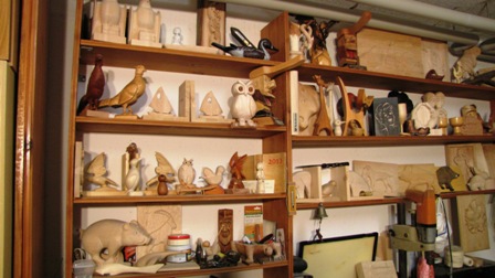 ich habe gerade erst wieder angefangen zu schnitzen. Um genau zu sein, der Kopf ist neben einem Baum das erste, was ich nach 25 Jahren Pause wieder geschnitzt habe. Insofern brauche ich noch keine Regale