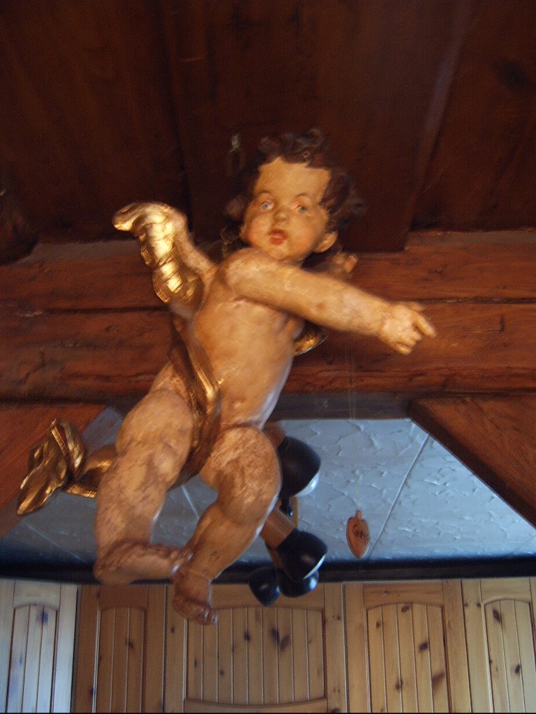 Der Körper ist komplett aus Fichterahmen 6/6 cm geschnitzt, das einzige elektrische Hilfsmittel war ne Ständerbohrmaschine um die Gelenke halbwegs Akkurat hin zu bringen. Der Rest " Mit der Hand am Mann ".