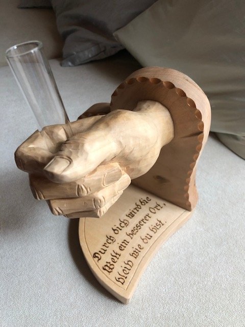 Ich habe eine Hand mit Reagenzglas geschnitzt.