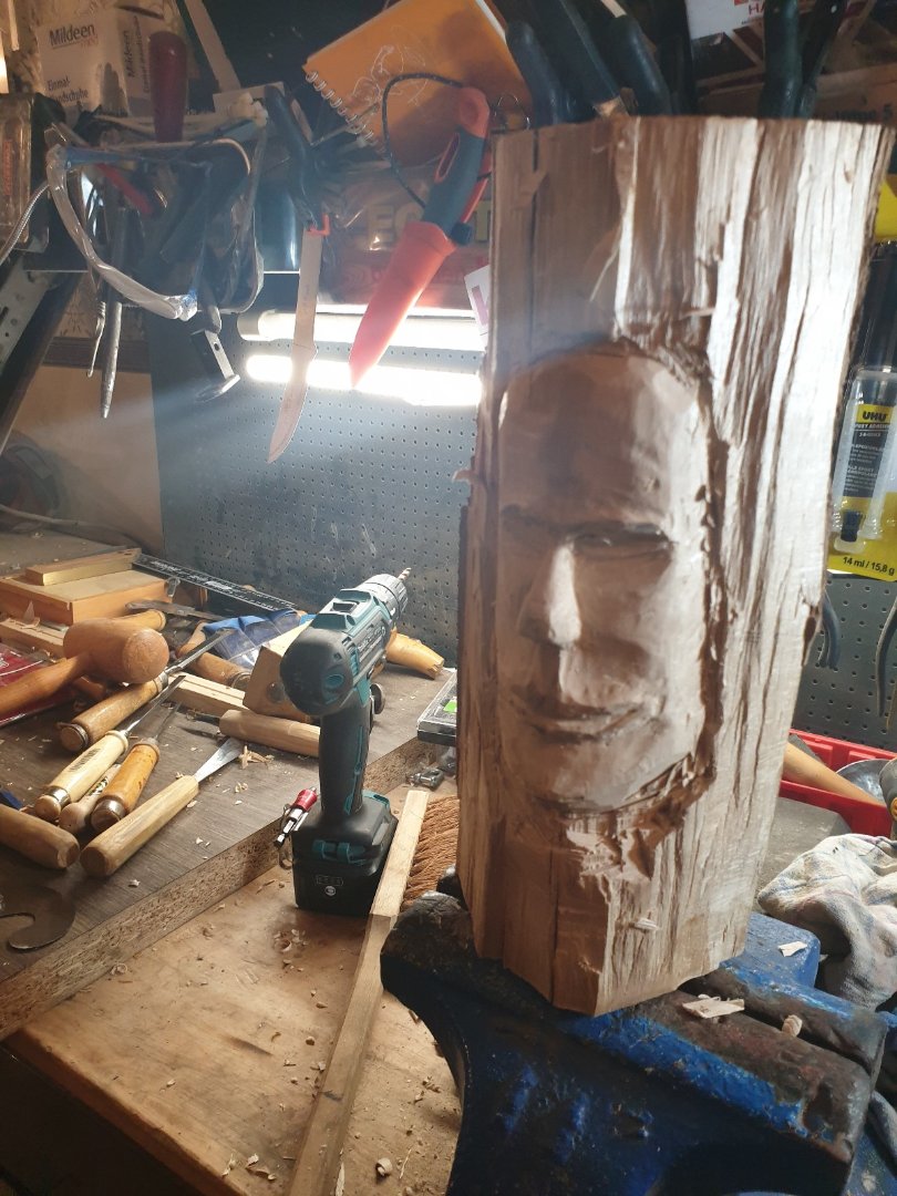 Hier mal mein erster Versuch ein Kopf zu schnitzen, hatte nur Akazie also habe ich einfach losgelegt.Ist kein Meisterwerk aber ganz okay ausser die Augen da habe ich die größten Probleme mit.