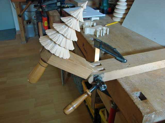 Normal ist der Winkel bei mir in der Spannzange der Hobelbank eingespannt und mit der Schraube am Schanier kann ich mit meine Arbeit in jedem Winkel einstellen und durch die Figurenschraube auch in jede Richtung drehen. Am Schnitzwinkel befindet sich ein Schlitz in der Breite der Figurenschraube, so das ich meine Arbeit jeder Zeit aus dem Winkel entmehmen kann ohne die Figurenschaube zu entfernen. Ist die Schraube zu lang, genügt ein Distansring um dies auszugleihen , so das deine Arbeit immer einen sicheren Halt im Schnitzwinkel hat.