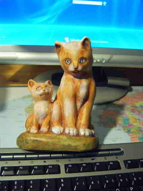 ( Warum " heiße Mietzen" - sie sind aus einem Brennholzscheit geschnitzt. )