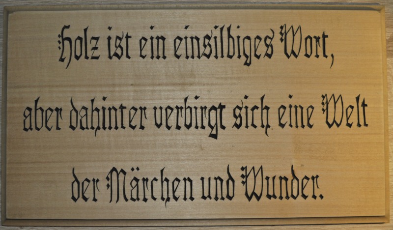 Das Holz ist Linde, die Schrift mit schwarzer Acrylfarbe eingefärbt.