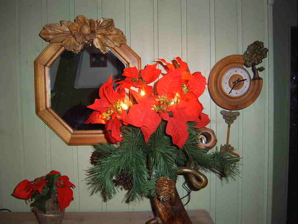 Im Sommer eine Blume aus dem Garten , im Spätsommer dann ein Strauß Edelweiß und in der Adventszeit das beleuchtete Kunstgesteck.