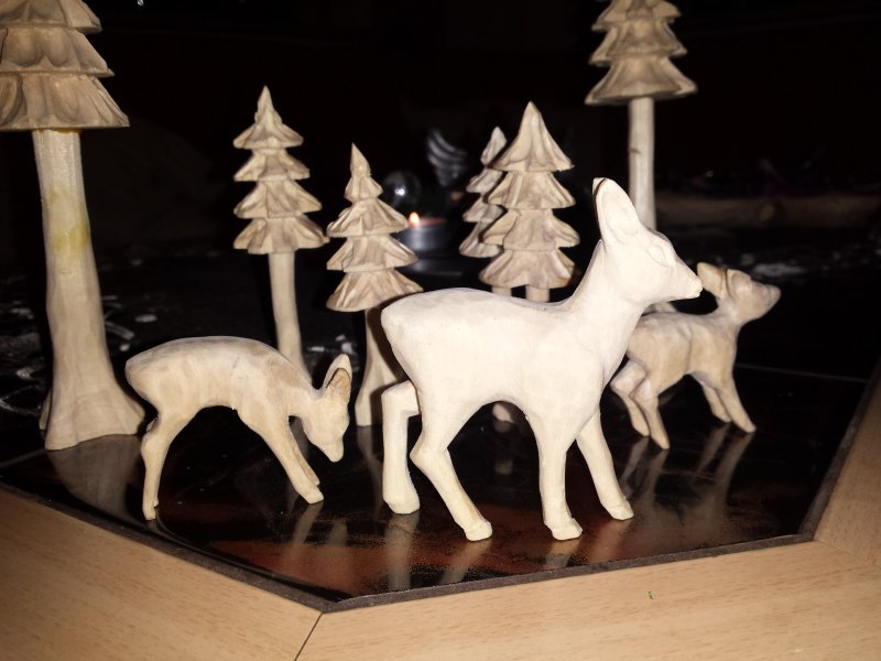 Hab jetzt noch einige Rehe und Bäume gemacht will diese bemalen aber meine Frau nicht das muss ich noch klären.