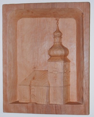 habe die Kirche von Benk aus Buche als Relief geschnitzt