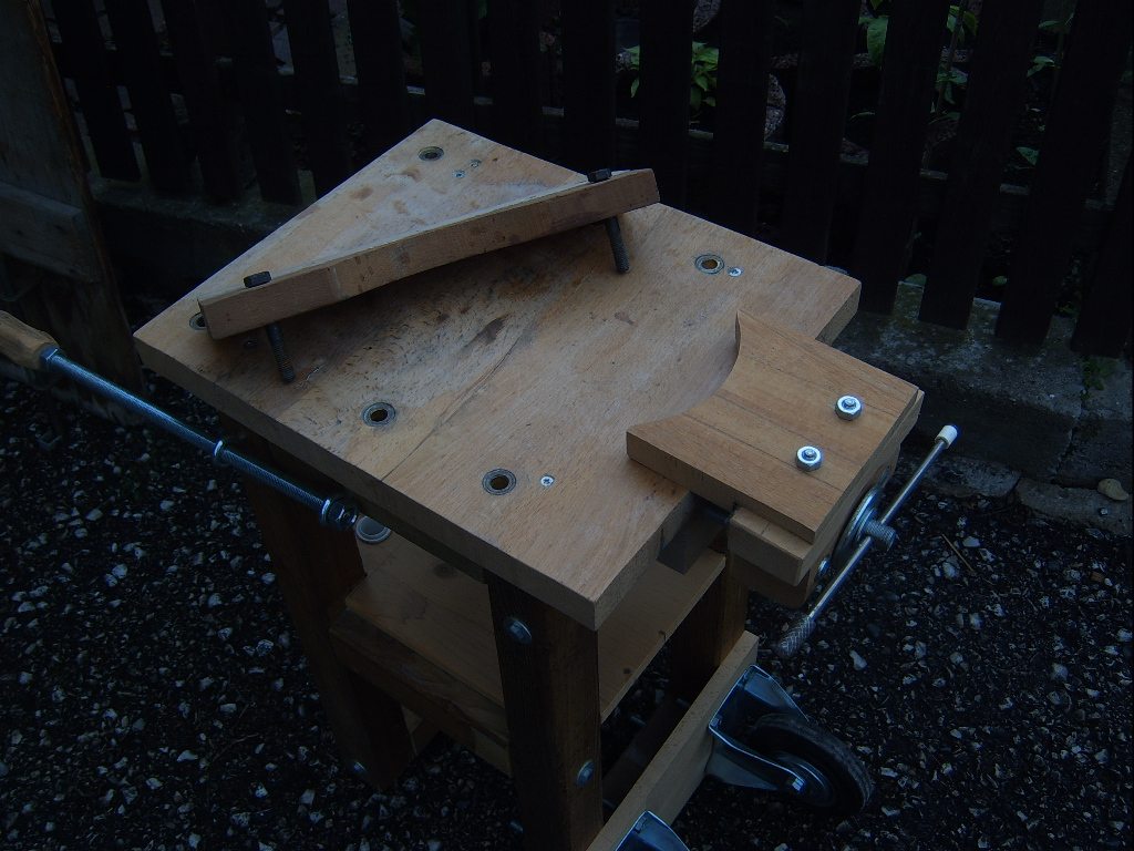 Schaut euch die Bilder mal an , ich kann praktisch alles Mögliche damit einspannen , sogar große Rohlinge bis 95 cm hoch ; Schnitzgalgen anschrauben , schräge Klemmplatte für Reliefs ( nicht im Bild ) . Das Ganze ist , wenn ich es kippe , mit der Lenkstange fahrbar , da ich es in der 20 meter entfernten Scheune stehen habe .