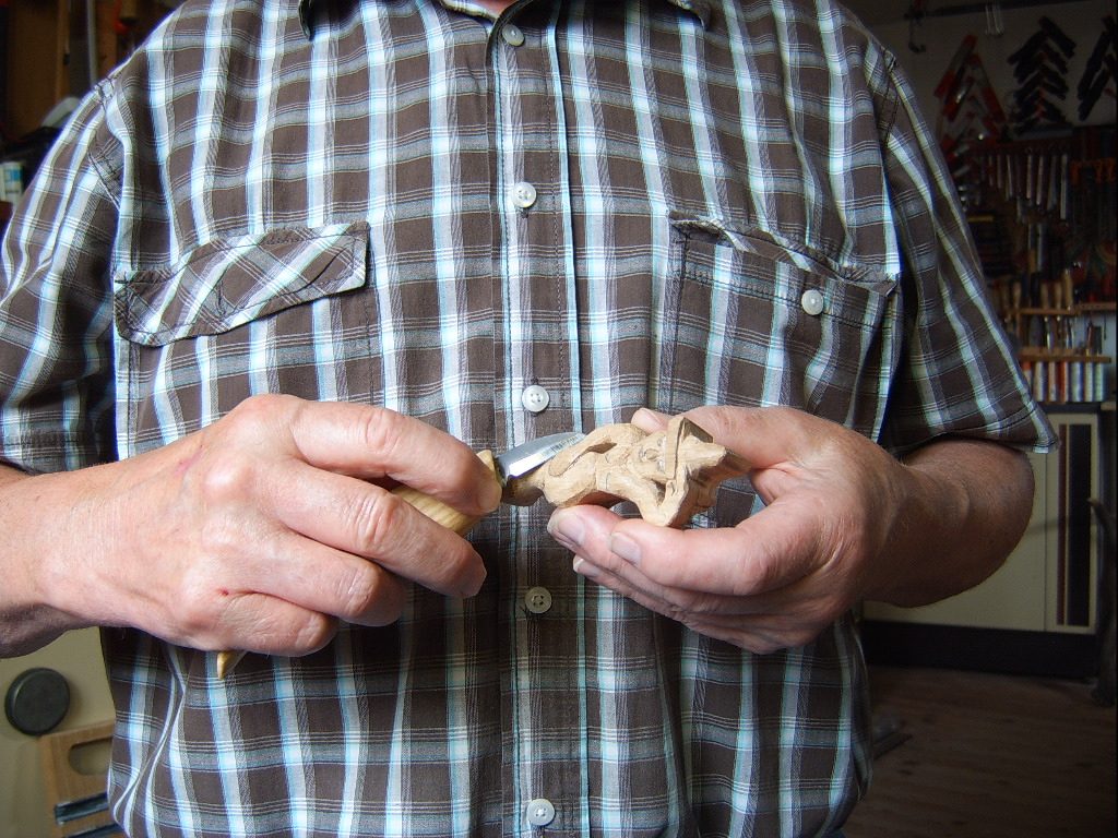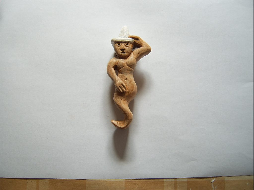Kondomi , habe ich ihn getauft - er ist aus Eiche geschnitzt und 10 cm lang .( siehe Kopfbedeckung )