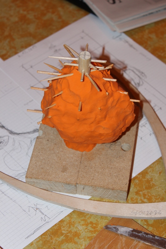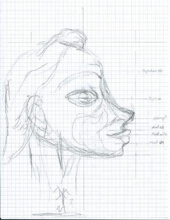 Wie in meiner Vorstellung erwähnt bin ich dabei eine Marionette zu schnitzen, es ist bis auf einige Fingerübungen für die Flöten meine erste Schnitzarbeit. Zuerst habe ich mir von Bilder aus dem Film " Die Legende von Pinocchio " eine Zeichnung skizziert und nach der ein 1:1 Modell aus Knet vom Kopf geformt.