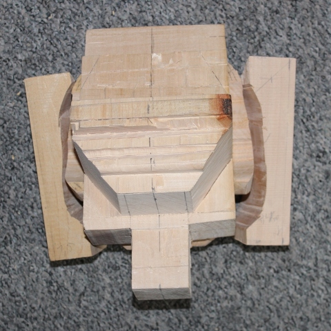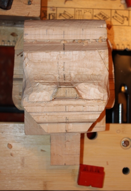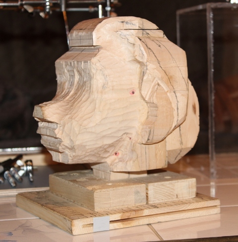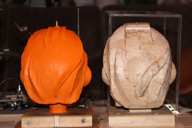 Dann gings ans Holz, der Kopf ist vom Kinn bis oben 17 cm.