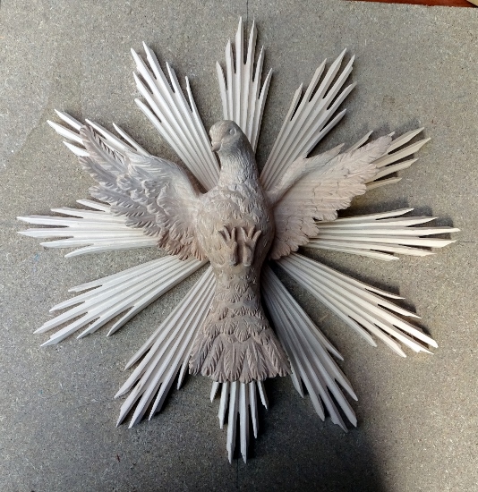 Ich habe eine Taube mit ausgebreiteten Flügeln geschnitzt.