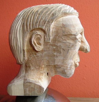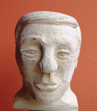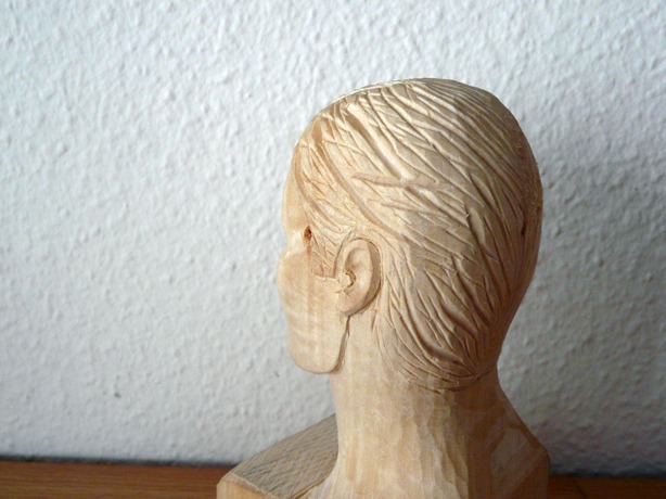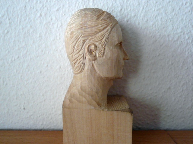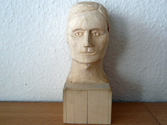 weil mir das Schnitzen von Gesichtern, insbesondere der Augenpartien, einfach nicht richtig gelingen wollte, habe ich mich an das dargestellte Übungsobjekt gewagt. Es besteht aus Lindenholz und der Kopf ohne Sockel ist 10 cm hoch.