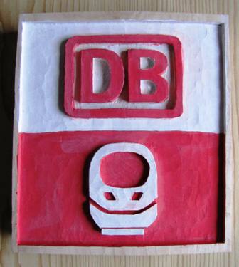 Einen schönen Sonntag wünsche ich allen Lesern,hallo Hans. Das Logo habe ich auf meinem Smartphone als Bild der Bahn App. Das habe ich ausgedruckt, mit Blaupapier aufgemalt und dann mit den verschiedenen Schnitzmessern ausgearbeitet. Es kam keine Oberfräe zum Einsatz. Bei den Farben kommen nur rot und weiß vor, so das da keine Schwierigkeiten auftreten. Heute werde das Holz mit Hasenhautleim einpinseln. Den Leim werde ich in Kürze ansetzen und im Babykostwärmer auf Temperatur halten. Ich stell dann die Bilder ein. Bis dahin verbleibe ich mit freundlichem Gruß
