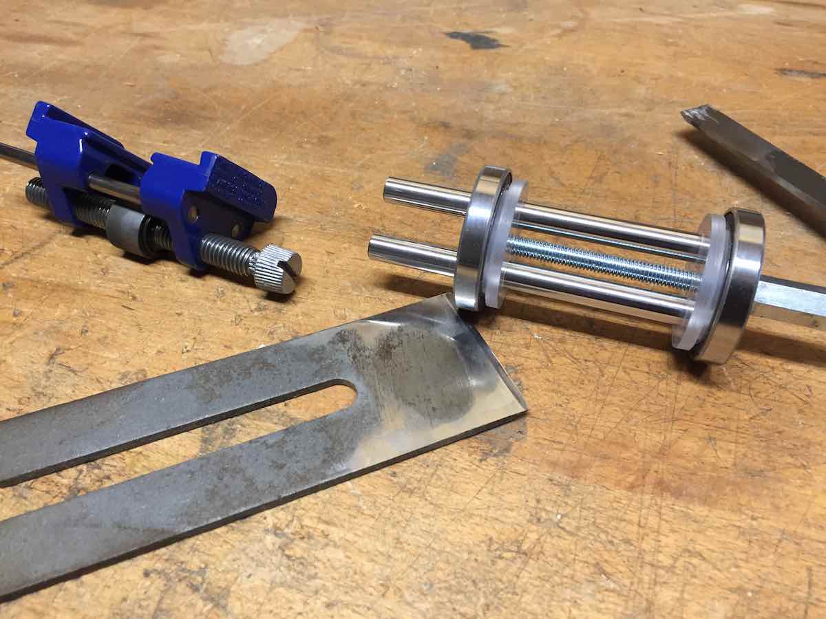 Also muss eine Schleifhilfe her. Ich besitze zwar schon so ein Billigprodukt, doch damit funktioniert es nur bedingt, da die Laufrolle zu schmal ist und das Eisen auf dem Stein oder Schleifpapier hin und her kippt.