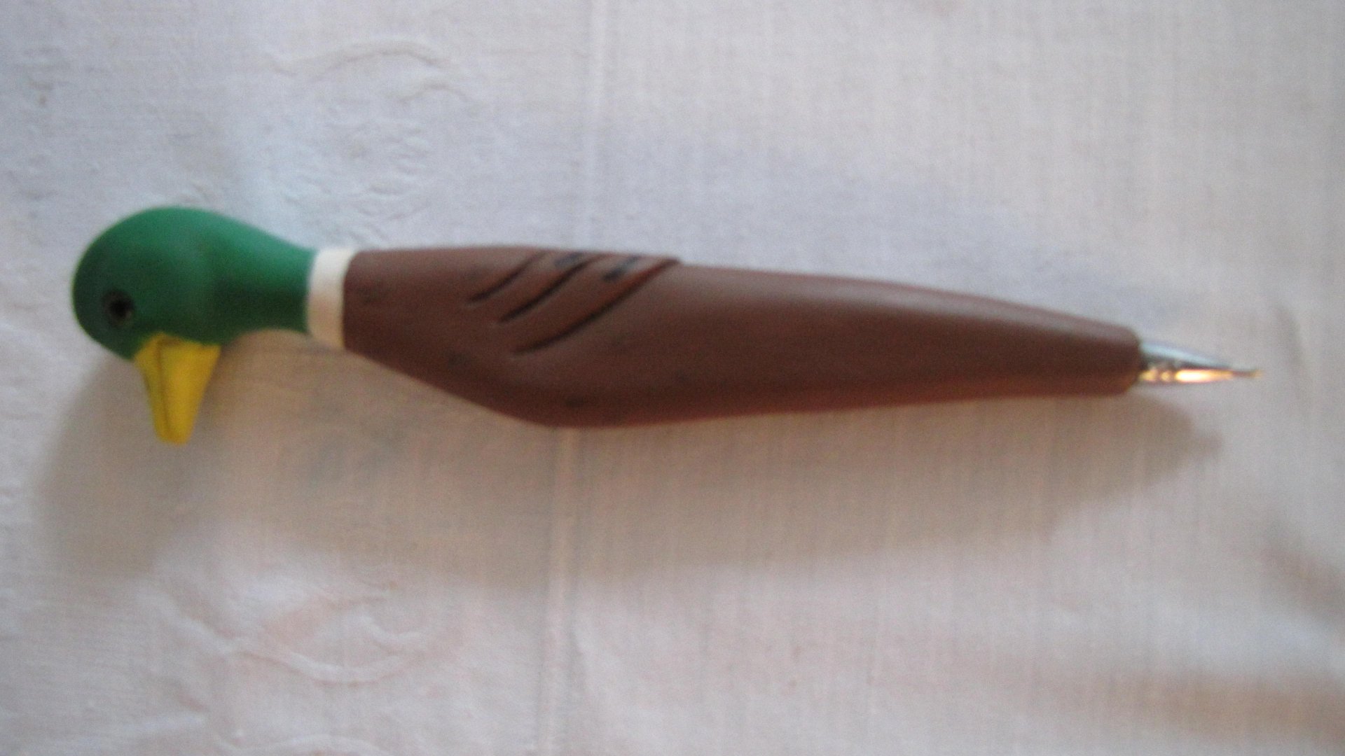 deine Stockente ist sehr gut gemacht, doch wie willst du daraus einen Kugelschreiber machen.