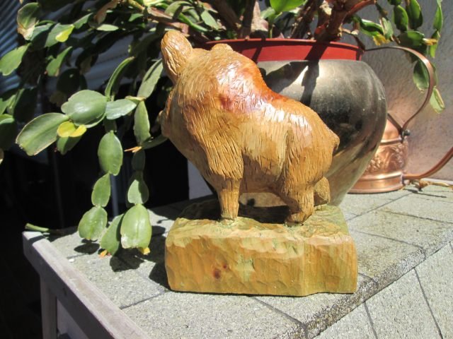 Das ganze Wildschweinchen etwas dunkler machen ( mit Ölfarbe , da die länger " offen " bleibt und dann mit einem Holzzahnstocher kurze , kräftige Borsten herausreiben / kratzen , die dann den Untergrund wieder erscheinen lassen ; es sieht dann aus - durch das die " Kratzer " dann wieder hell werden , wie die Original - Wildsau und die Hauer / Zähne dann auch etwas hell abreiben .