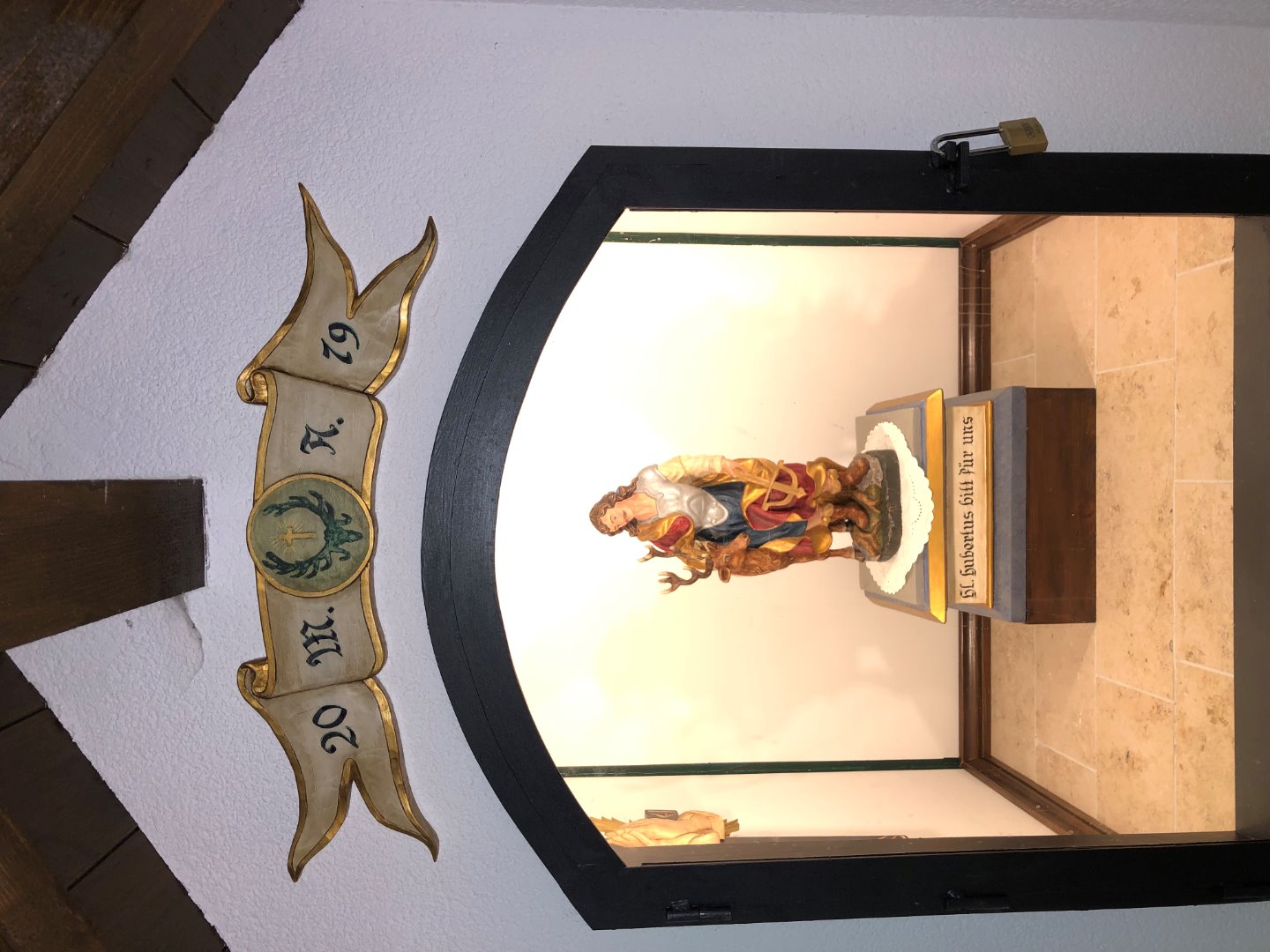 Es ist ein auf Wunsch, aus einen Schnitzrohling, geschnitzter und bemalter hl.Hubertus.