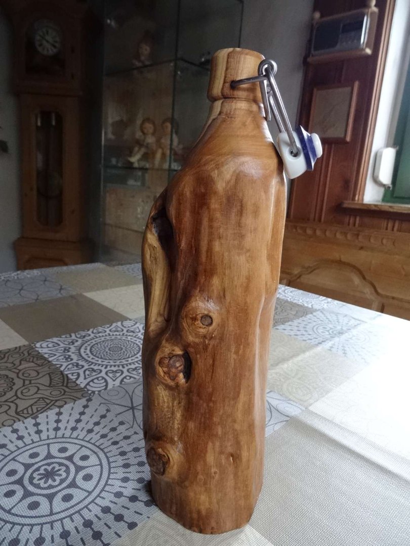 ... eine Flasche aus Olivenholz !