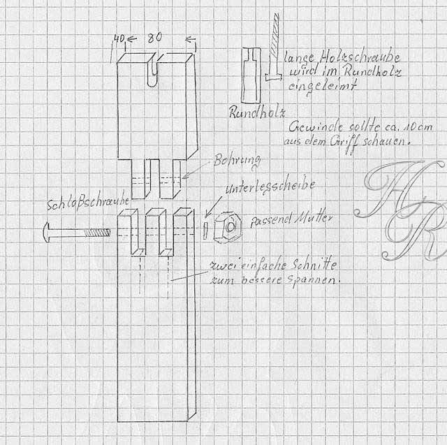 Das wichtigstes aus meiner Sicht, wäre eine Möglichkeit das du dir deine Arbeit einspannen kannst, so das du beim Schnitzen beide Hände am Werkzeug hast. Du weißt als Anfänger noch nicht wann ein Werkzeug stupf ist und versucht das Schneiden mit Kraft auszugleichen. Hast du dein Werkstück in der Hand und deine Klinge rutscht weg, garatiere ich dir, das sich ein Finger hinter dem Werkstück einer Klinge nicht in den Weg stellen kannum diese zu stoppen. Einen einfachen Schnitzwinkel kannst du dir selbst aus Leisten, die du wie ein großes Schanier zusammen leimst herstellen. Fertige gehobelte Buchenleisten bekommst du in jedem Baumarkt.