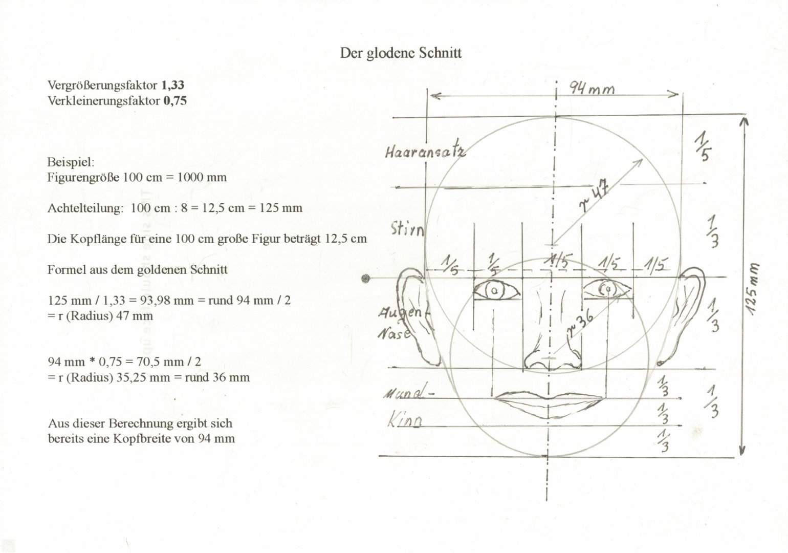 Es geht dabei um nichts geringeres, wie die vollständige Berechnung eines menschlichen Kopfes, der die wirkliche Grundlage bildet, um eine menschliche Figur zu Zeichnen, zu modellieren, oder zu Schnitzen.