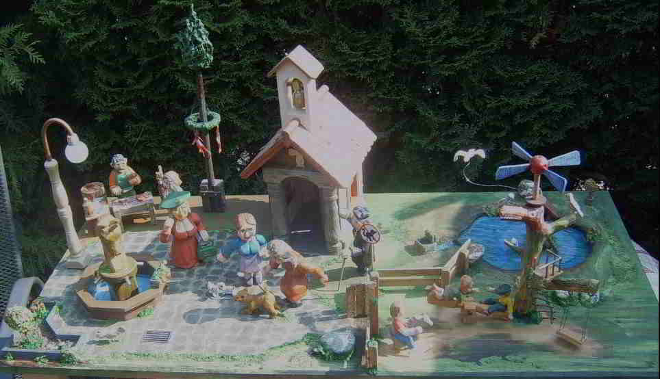 meinen Dorfplatz kennen ja einige Schnitzfreunde schon aus dem vorherigen Forum ; für die , die erst seit dem neuen Forum dabei sind, nochmals meinen beweglichen Dorfplatz.