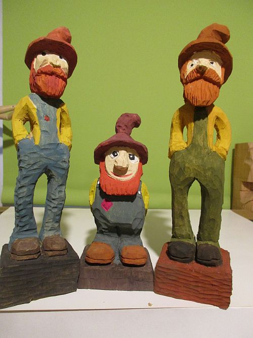 Du wirst zum Schnellschnitzer und das wäre die Voraussetzung Deine Werke auch halbwegs wirtschaftlich zu verkaufen. Interessant wie Du die Hosenbeine der beiden Delmer unterschiedlich geschnitzt hast. Wenn Du Deine Farben "wässeriger" verwendest, wird die Bemalung automatisch transparenter. Wer schnell schnitzt entwickelt dabei dann langsam auch eine persönliche "Handschrift" im Schitt.