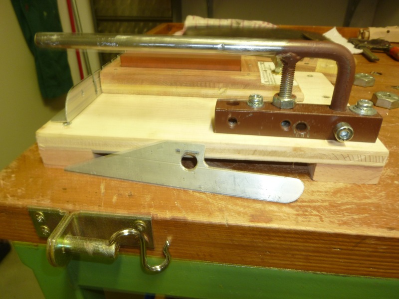 Deine Vorrichtung sieht schon richtig gut aus. Eine kleine Verbesserung scheint mir aber nötig. Um zu verhindern daß auf dem Stein immer in der gleichen Bahn geschliffen wird sollte deine "Schleiflade" so eingestelltsein, daß durch verschieden breite Zwischenlage-Leisten die Steinabnutzung über die Steinbreite variiert werden kann.