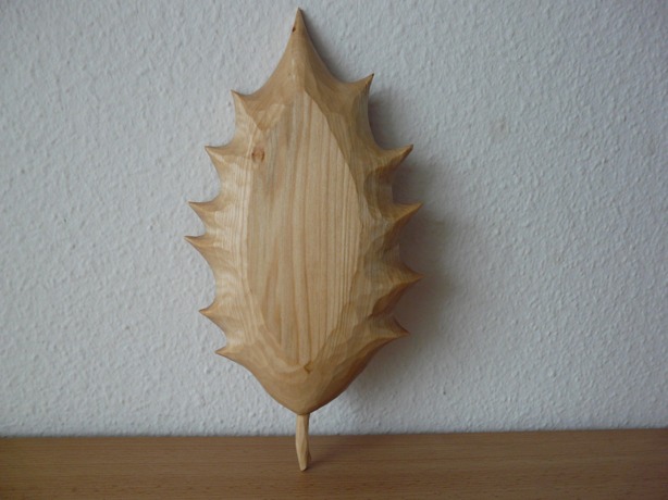 vor einiger Zeit habe ich eine Weinblattschale geschnitzt und in diesem Zusammenhang ist mir die Idee gekommen, einer Schale die Form eines Stechpalmenblattes zu geben.