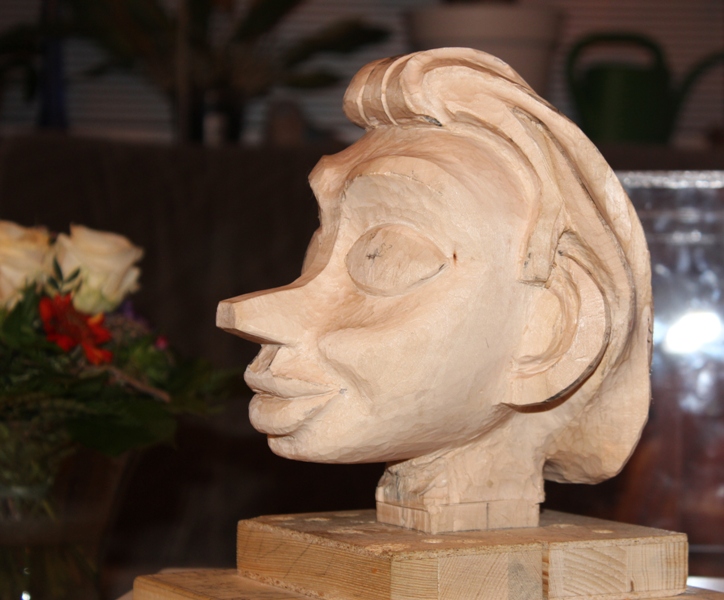 Dann gings ans Holz, der Kopf ist vom Kinn bis oben 17 cm.