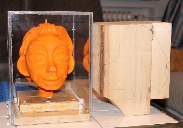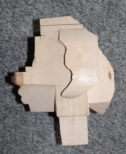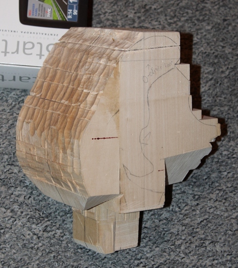 Wie in meiner Vorstellung erwähnt bin ich dabei eine Marionette zu schnitzen, es ist bis auf einige Fingerübungen für die Flöten meine erste Schnitzarbeit. Zuerst habe ich mir von Bilder aus dem Film " Die Legende von Pinocchio " eine Zeichnung skizziert und nach der ein 1:1 Modell aus Knet vom Kopf geformt.