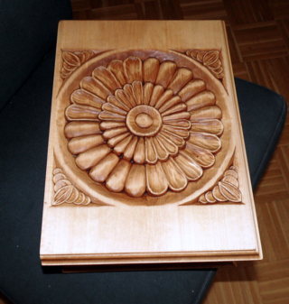 Im Fall der Schatulle von Thies hat er den Deckel der Schatulle mit einem Blumenrelief versehen, zu dem man natürlich Hohleisen in unterschiedlichen Stichbreiten benötigt. Zusammenhängend kann man also auch beide Techniken miteinander kombinieren,wie sehr schön an dieser Schatulle zu sehen ist.