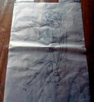 das ist eine Amaryllis und ja ich hatte eine Zeichnung allerdings weiß ich nicht ob ich das Bild hier einstellen darf wohl eher nicht ich zeige hier meine Pauszeichnung die ich auf das Holz übertragen habe.