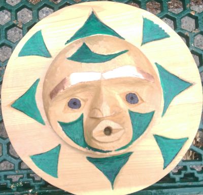 Nun reichte es dem Hergott wirklich. Er baute aus Muscheln und Mineralien der Steine ein Skelett. Aus dem Salzwasser der Ozeane schuf er Blut. Er klebte Matsch auf sein Skelett und schuf so den Koerper. Er wickelte etwas seiner eigenen Haut um den Koerper. Da seine Hautfarbe kupfern war, war der neue Koerper auch kupfern. Dann kam das Gehirn, Augen, ein Herz, die Organe und die Haut wurde empfindlich, sie konnte sehen und hoeren. Dann fing er den Wind ein, dieser kam in die Lungen und so wurde "Erste Frau", auch Kupferfrau (copper woman) genannt, geschaffen. Diese Frau baute sich eine Huette, grub nach Muscheln, sammelte Vogeleier, sammelte Beeren und ernaehrte sich. Wenn es im Sommer stuermte, sass sie in ihrer Huette und sah den Sturm vorbei ziehen. Eines Tages wurde eine grosse Tanne vom Blitz getroffen und fiel brennend um. Kupferfrau wagte es, schnell Holz zu sammeln, dann einen der brennenden Zweige auf den Holzhaufen zu tun und von da ab hatte sie Licht und Waerme. So lebte sie in ihrer Huette, selbst im Winter und wenn sie nicht gestorben ist, ..........