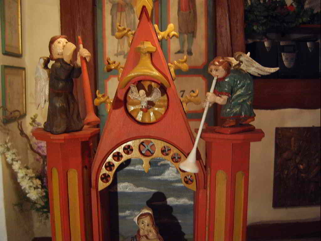 Tonfigur nachgeschnitzt. Sonst ist die Bemalung auch nur vorgrundiert. Der Hintergrund ist bemalt - ist unser Hausberg - allerdings hier nicht gut zu erkennen.