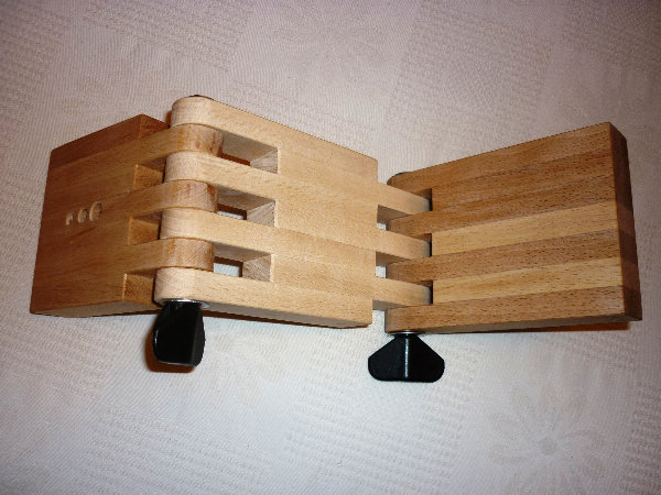 ein Schnitzwinkel klemmt so fest, wie er Reibflächen hat. Daher ist der Einsatz von Baumarktleisten aus Buchenholz sinnvoll.