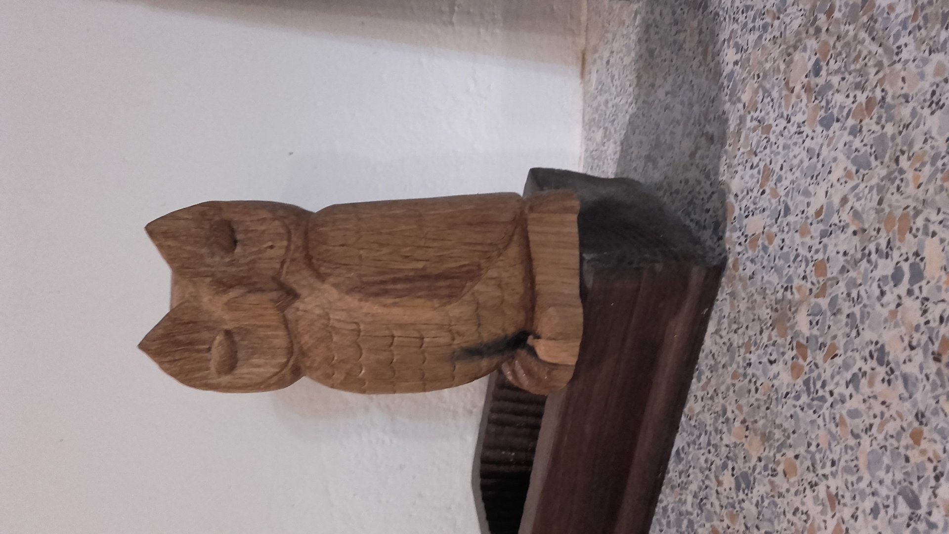 eine solche Eule als Übungsstück zu bezeichnen ist hier nicht so angebracht, denn ich weis aus eigner Erfahrung, wieviel Arbeit damit verbunden ist. Zumal handelt es sich auch noch um Eiche, die sich ohnehin recht schwer bearbeiten lasst ohne viele Ausbrüche beim Schnitzen zu haben.