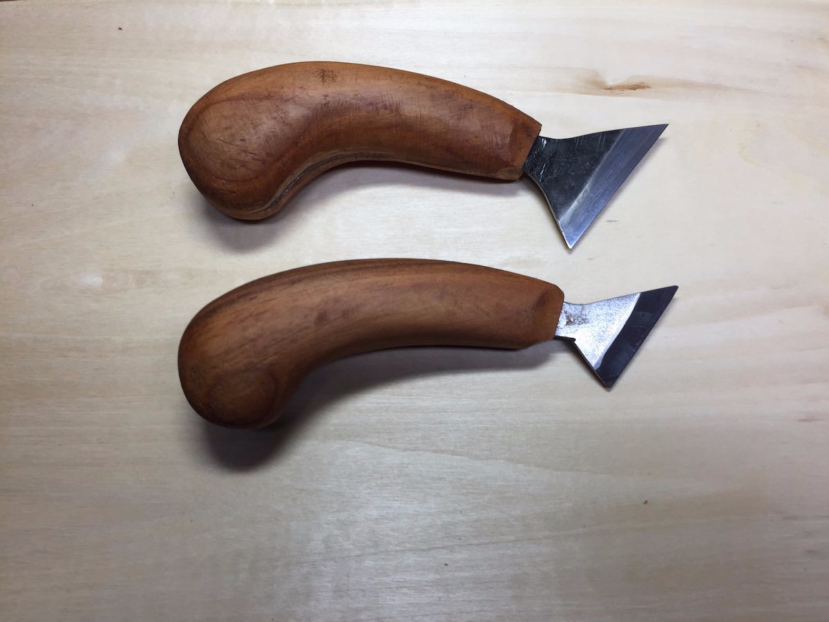 Für manch einen von Euch haben diese Werkzeuge gewiss ein merkwürdiges Aussehen, doch es ist so gewollt. Geschnitzt wird nicht nur in Deutschland und es gibt reichlich gute Holzschnitzer in einer Vielzahl anderer Länder. Die hier gezeigten Werkzeuge werden von russischen Holzschnitzern genutz, und ersetzen Rodenmesser ,Kerbschnitzmesser, sowie schräge Balleisen.