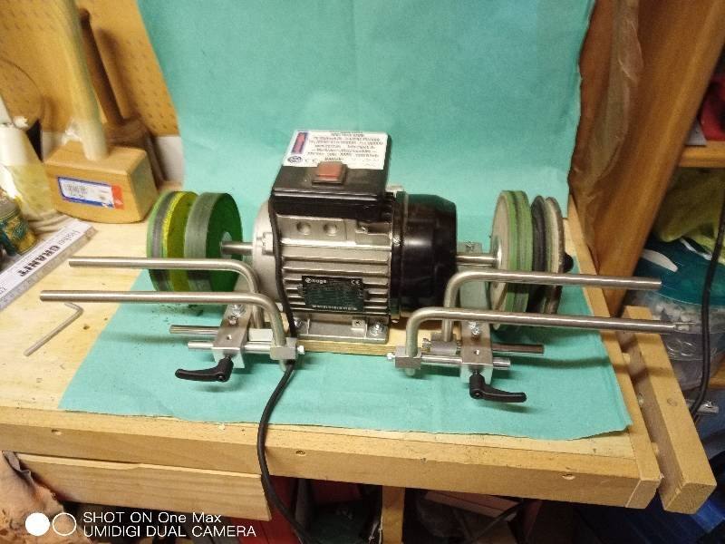 die gelbe und grüne sehe ich die anderen beiden sind wohl rot und blau. Soweit ich weiß werden nur die keramikscheiben erwärmt. Auf Keramik nur ohne Andruck schleifen. Auf die anderen immer Schleifpaste und diese immer reichlich auftragen. Auf den bunten Scheiben immer mit viel Andruck arbeiten. Schleifpaste sollte nicht wegkrümeln sondern schmelzen.