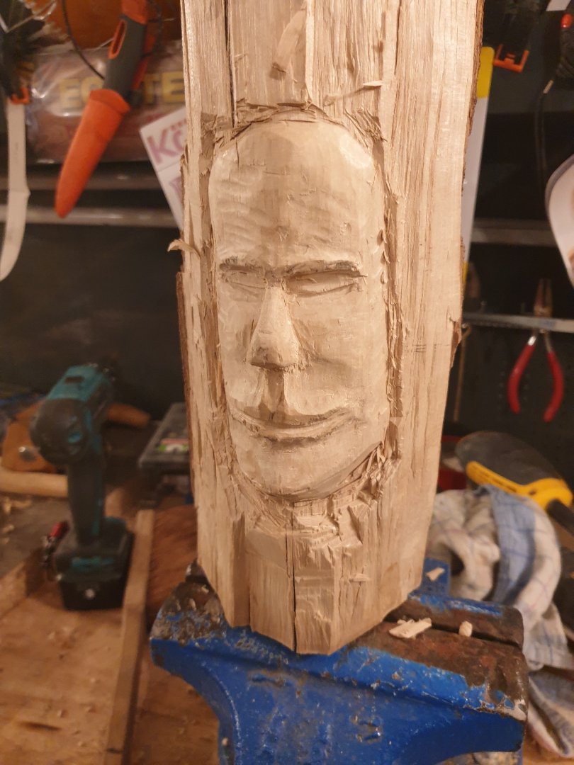 Hier mal mein erster Versuch ein Kopf zu schnitzen, hatte nur Akazie also habe ich einfach losgelegt.Ist kein Meisterwerk aber ganz okay ausser die Augen da habe ich die größten Probleme mit.