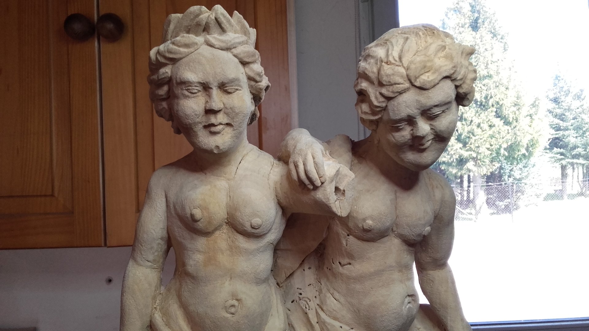 ich habe ein Engelspaar zur Aufarbeitung bekommen. Es stammt aus einer Kirche und ist schon sehr, sehr alt. Ursprünglich war die Figur vergoldet, wovon aber nur Reste zu sehen sind. Es sieht so aus, als wenn die Figur bei jeder Renovierung mit überstrichen wurde. Es sind mehrere Farbschichten abzutragen, bis man aufs Holz kommt. Mal sehen welche Schäden dann noch zu sehen sind. Obwohl darin schon mehrere Generationen Holzwürmer aufgezogen wurden ist das Holz noch sehr fest. Ich werde weiter berichten.