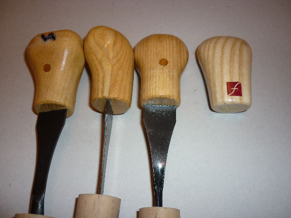 Mal sehen , vielleicht mache ich mir mal noch ein paar Wechselgriffe in verschiedenen Formen , sind ja schnell zu fertigen. Jedenfalls fallen die Klingen ganz locker rein, sind dann aber richtig fest beim Schnitzen.