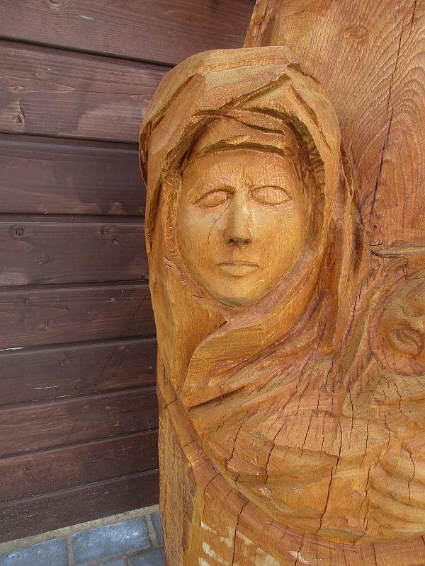 ich arbeite gern in der Kombination Kettensäge und Schnitzeisen, bei der Familie kamen erstmals noch kleine Fräser und Schleifmaschinen (Winkelschleifer, Bandschleifer und schleif Einsätze für die Bohrmaschine) zum Einsatz. Mich fasziniert große Sachen aus einem Stamm zu arbeiten. Ich habe mal eine Hexe aus einem Stück Lindenstamm etwa 80 cm Länge und 60 cm stark mit dem Eisen geschnitzt, war sehr Schweißtreibend und hat viel Zeit gebraucht. Ich habe kurz vor der Familie Maria geschnitzt. Ich mag beides gern, vor allem beim sägen sind wir oft mehrere Freunde und das macht besonders viel Spaß.
