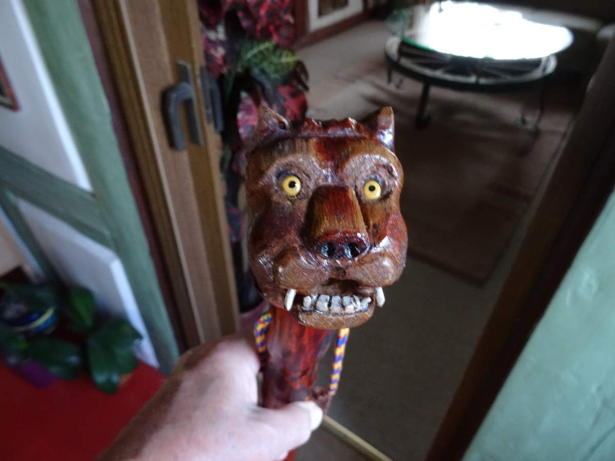 Den Stock selber habe ich schon vor längerer Zeit mal angefertigt , mit dem Spiralmuster auf der ganzen Länge .