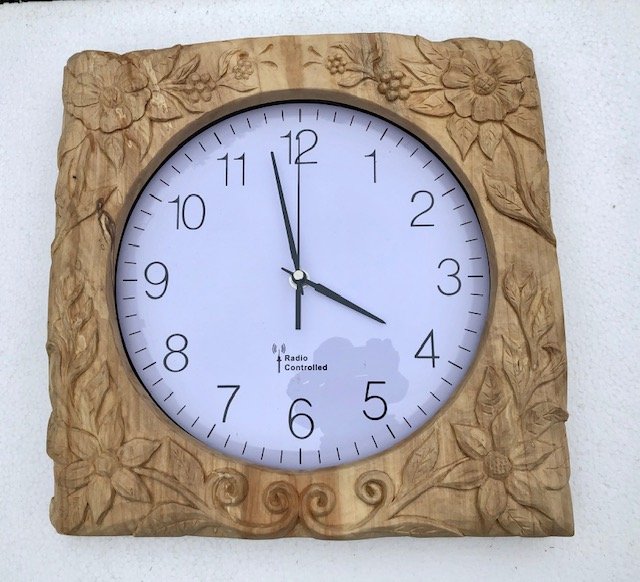 Es ist ein Rahmen für eine E-Uhr, 32 mal 32 cm groß und 40mm dick.