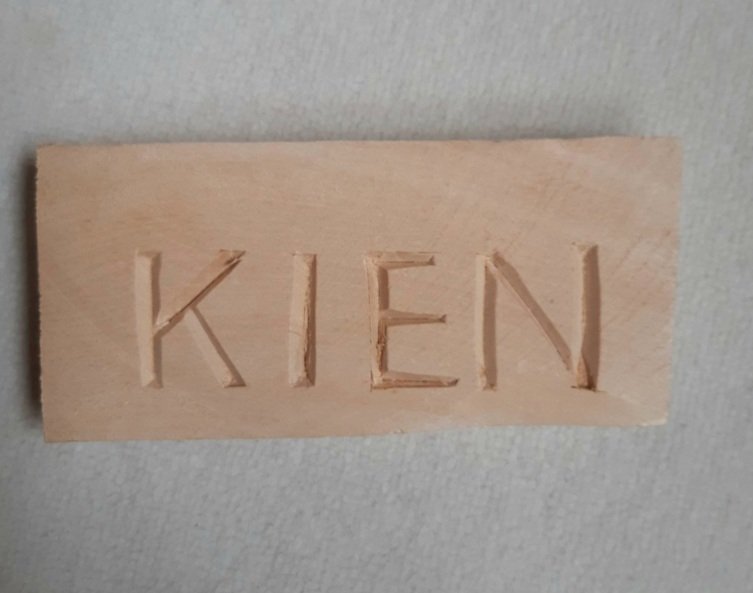 das sieht doch schon mal sehr gelungen aus. Auf diese Art uns Weise, lernst du mehr über die Eigenschaften deines Werkzeuges und über den Anstellwinkel um einen Span aus dem Holz zu heben. Die geomertrischen Formen der Kerbschnitzerei sin im Grunde genommen nichts anderes als das Schnitzen eines Schriftzuges, nur ist da der Anstellwinkel etwas flacher. Für eine weitere Übung kannst du den gleichen Schriftzug noch mal machen, nur mit dem kleinen Unterschied, das die Buchstaben breiter sind bei gleichbleibender Tiefe.