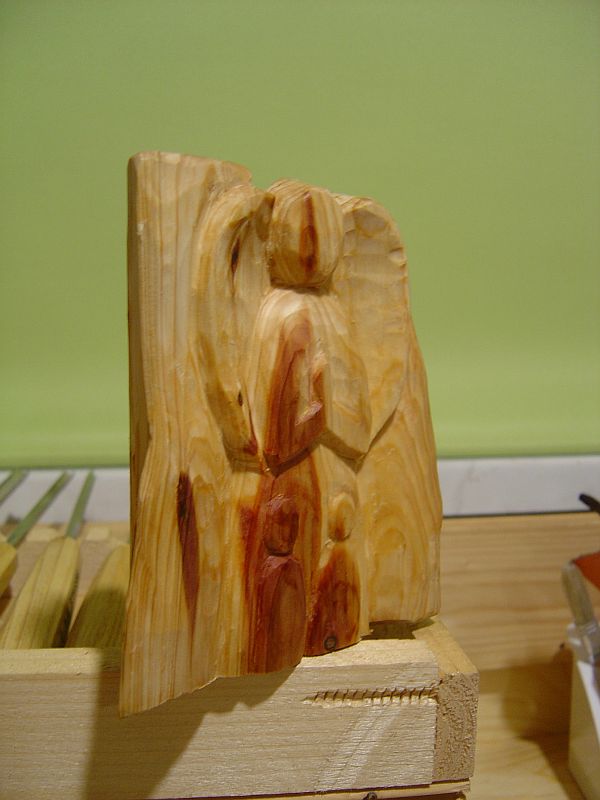 einen hübschen Engel hast Du da geschnitz. Allerdings vermute ich Dein Holz war keine Eibe. Eher ein Lebensbaum oder ein ähnlicher Baum zwischen Blatt- und Nadelholzbaum. Eibe ist so höllisch hart und im Splintholz gelb und im Kernholz dunkelbraun.