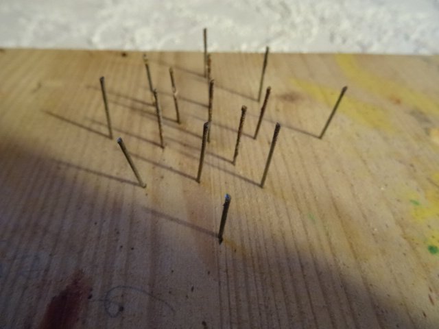 Ein Nagelbrettchen zum Trocknen , z. B. für Bierkrugdeckel