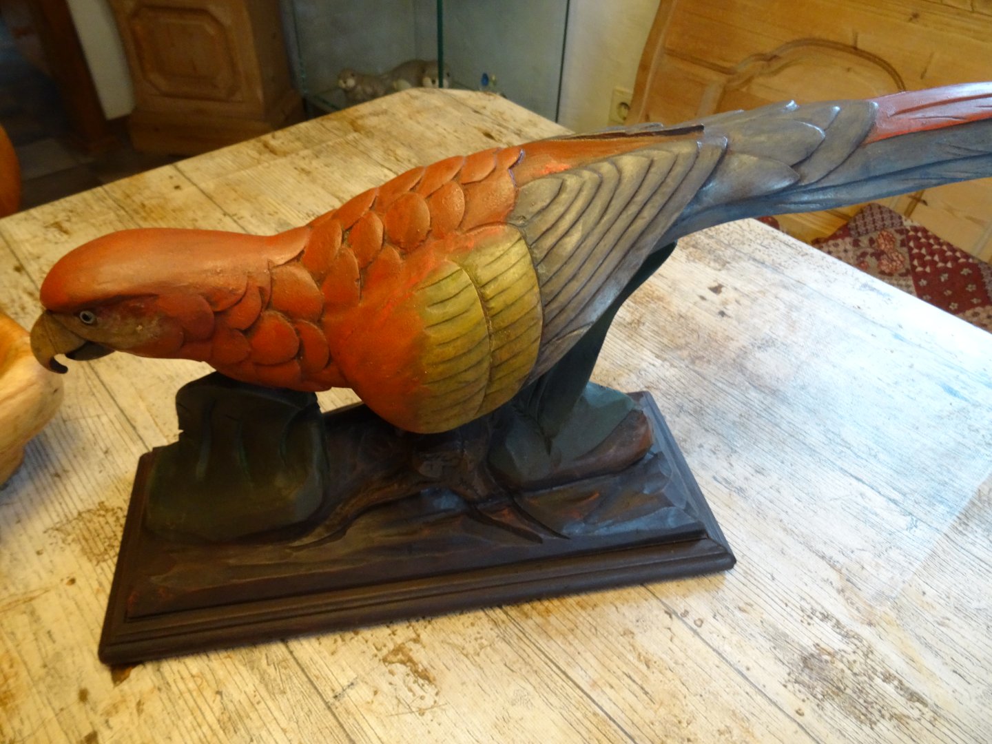Der Papagei war insgesamt 8 mal gebrochen und teilweise nicht exakt - also versetzt - wieder zusammengeklebt ;